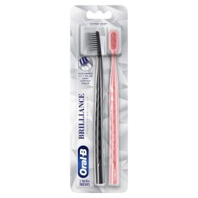 Oral-B Brilliance Whitening Manual Toothbrush, Extra Soft, Black & Coral, 2 Count, for Adults & Children 3+
