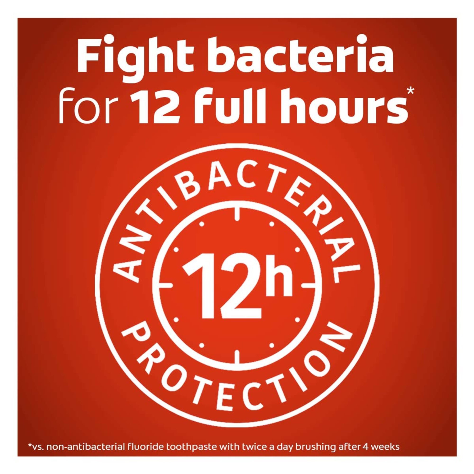 **vs. non-antibacterial fluoride toothpaste with twice daily brushing after four weeks of continued use