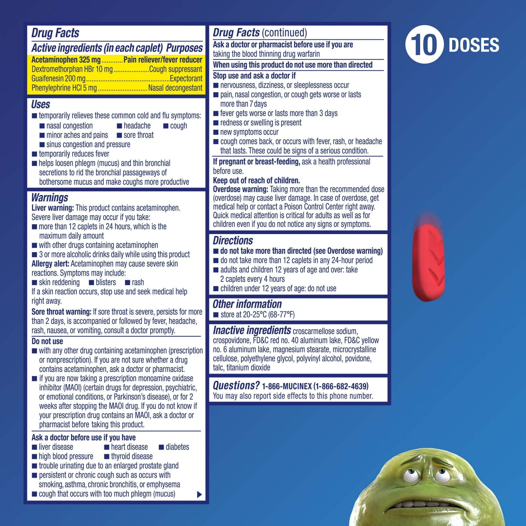 ALL-IN-ONE COLD MEDICINE: With just two Mucinex Cold and Flu caplets, you can relieve your worst cold and flu symptoms for up to 4 hours; Use as directed